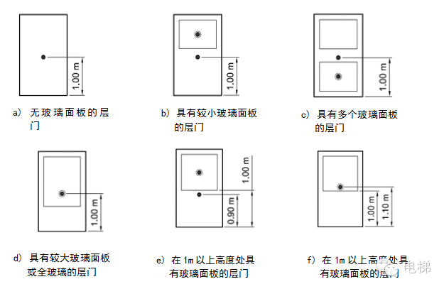 7.2.3.8 对于带玻璃面板的层门和宽度大于150 mm的层门侧门框,还应满足下列要求(见图7):
